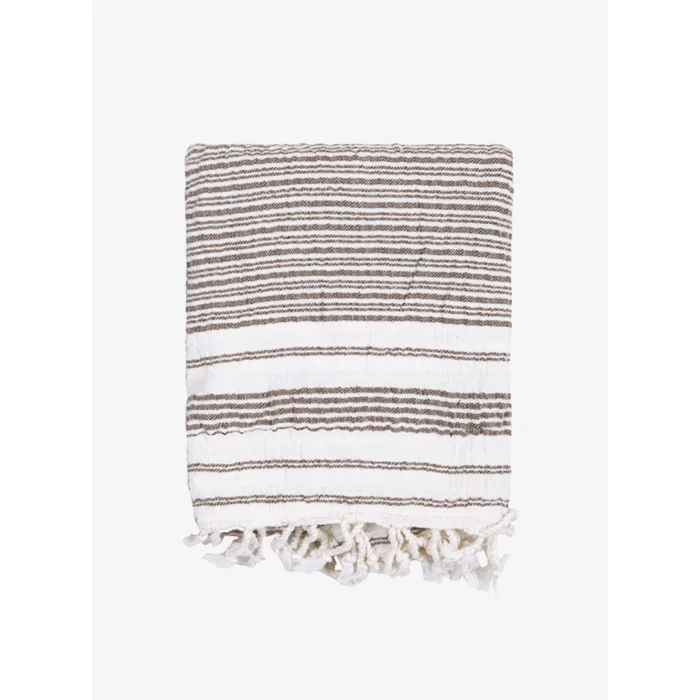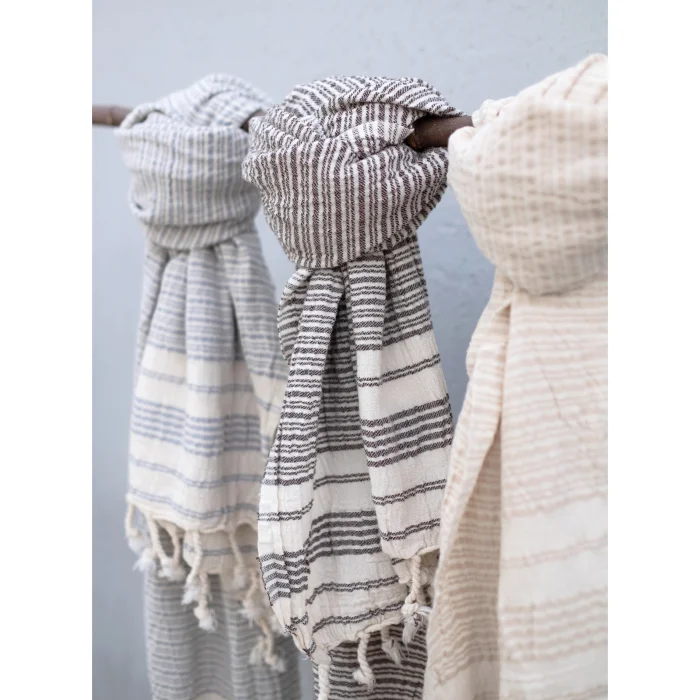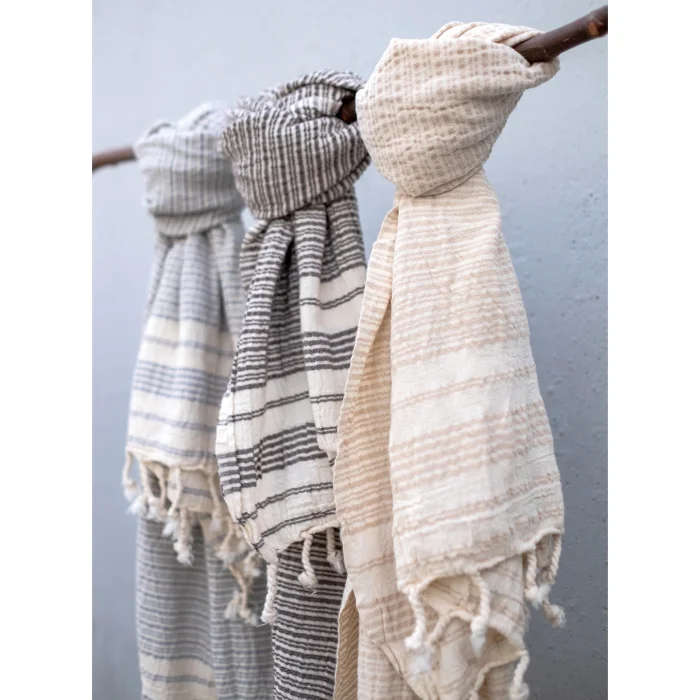 Bürümcük Peshtemal is produced by the traditional black loom weaving method. The extra softness and air permeability of the product comes from this weaving method and the expertly developed yarn structure.