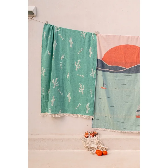Cactus Peshtemal is the perfect piece that reflects the energy of summer with its fun design. Its 100% cotton texture offers soft and light use, providing comfort at the beach or in daily life. Thanks to its practical design, it can be easily carried and accompanies your summer adventures. Reflecting Barine's unique style, this loincloth adds an elegant touch to your pleasant summer memories.
