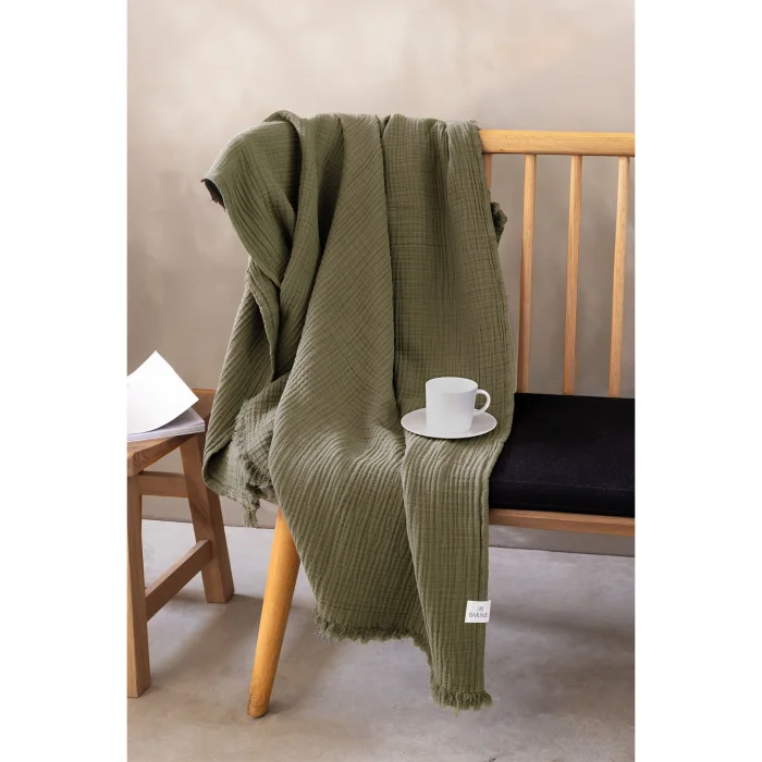 Cocoon Sofa Shawl offers comfort and elegance together with its 100% cotton texture. Its soft texture envelops you with every touch and relaxes you. Its special design with a crevice effect creates a modern aesthetic, while its double-sided usability harmonizes with different decoration styles. This shawl, which you can use both in your living room and bedroom, offers an elegant and functional option in every respect. It adds value to your living spaces not only visually but also with the warmth and comfort it offers.