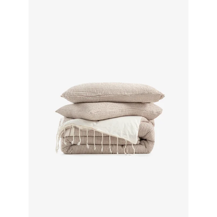 Crinckle Duvet Cover is made of 100% cotton using traditional methods with a sophisticated and timeless look. Pre-washed for pure softness. While it gives a pleasant feeling of freshness and comfort with its crevice effect texture, tassel details will complete the vintage look and accompany your bedroom decoration.