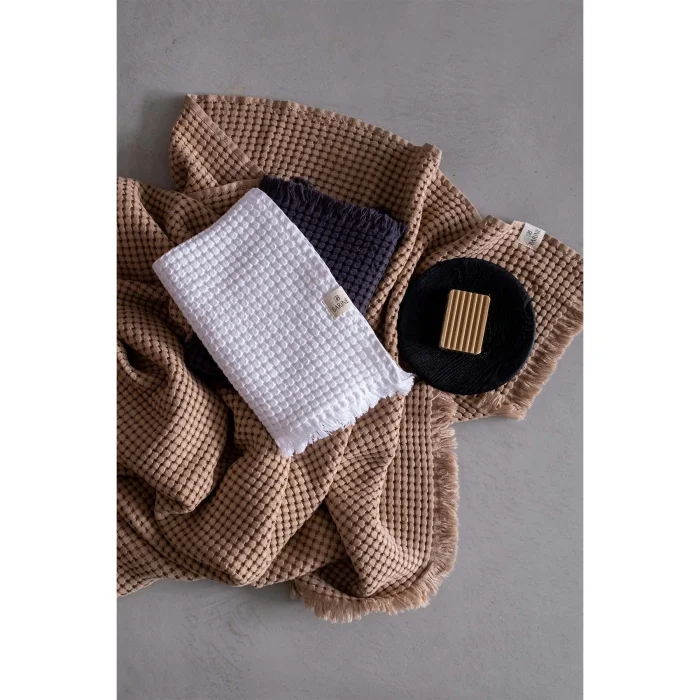 Eye Waffle Towel offers extra softness and comfort with its deep texture. Its 100% cotton texture provides a gentle touch to sensitive skin. Pre-washed and Oeko-Tex® certified, this towel offers a safe and healthy option. It gives you a usage opportunity that suits your needs with three different size options.