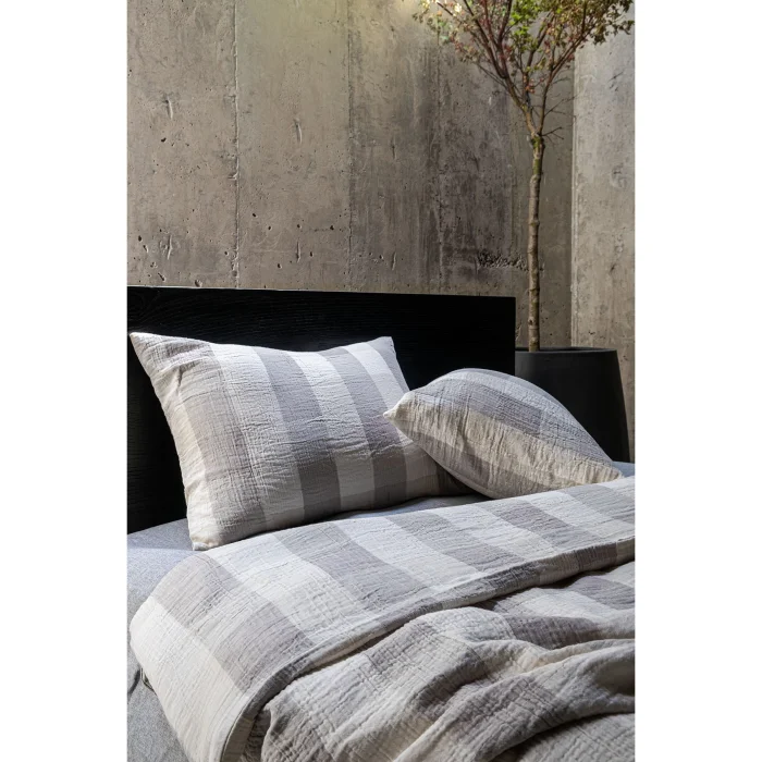 Gingham Gauze Duvet Cover offers an elegant and dynamic look by combining the soft texture of three-layer muslin fabric with the classic plaid gingham pattern. The special color tones of the collection add an elegant depth to the pattern, creating a stylish atmosphere. The traditional texture of the plaid gingham pattern meets the softness of muslin fabric, providing a perfect harmony both visually and texturally. Made from 100% cotton, this duvet cover is pre-washed and Oeko-Tex certified, offering comfort and quality together.
