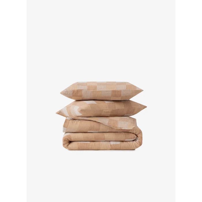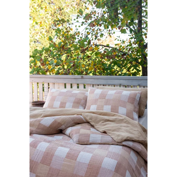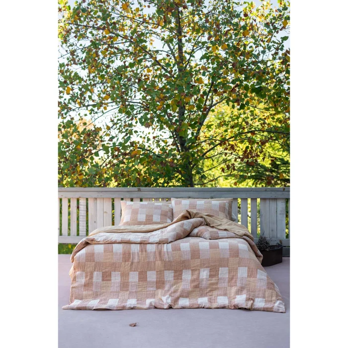 Product: Gingham Gauze Cotton Duvet Cover Oak Buff Rustic 200x220