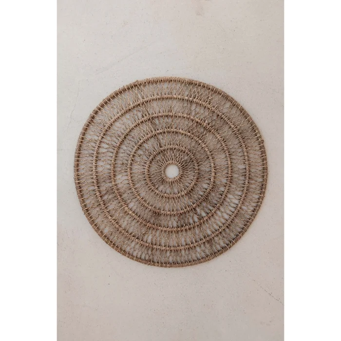 Product: Hand-knitted Round Placemat Made From Palm Fiber, Natural.