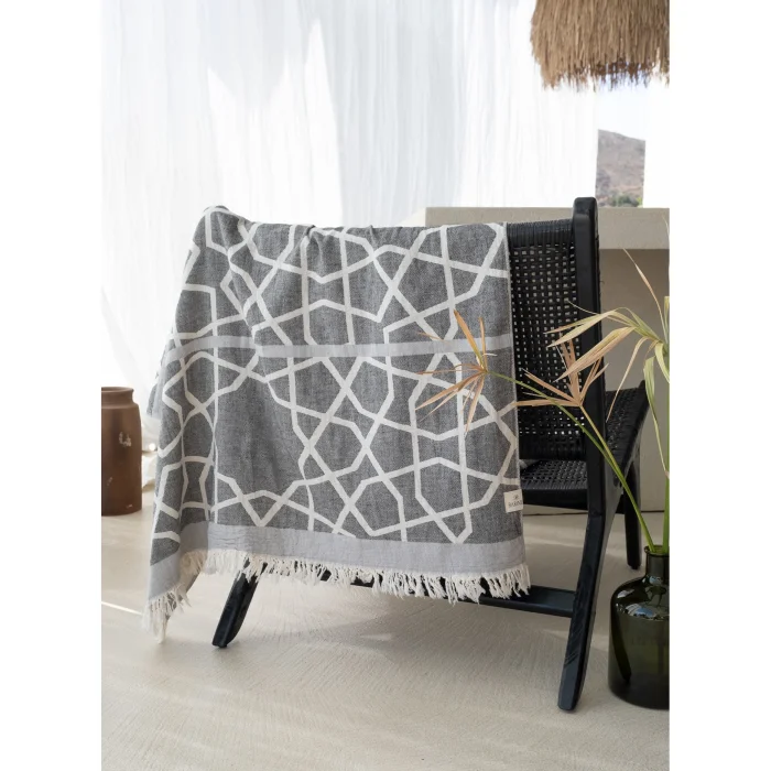 Marrakech Peshtemal is designed with inspiration from the ethnic tones of Morocco and the unique textures of Marrakech. It is the perfect piece to complete your beach style with its 100% cotton texture in a sweet Rose Smoke and Sage tones. This practical loincloth offers comfort and style while enjoying the summer.