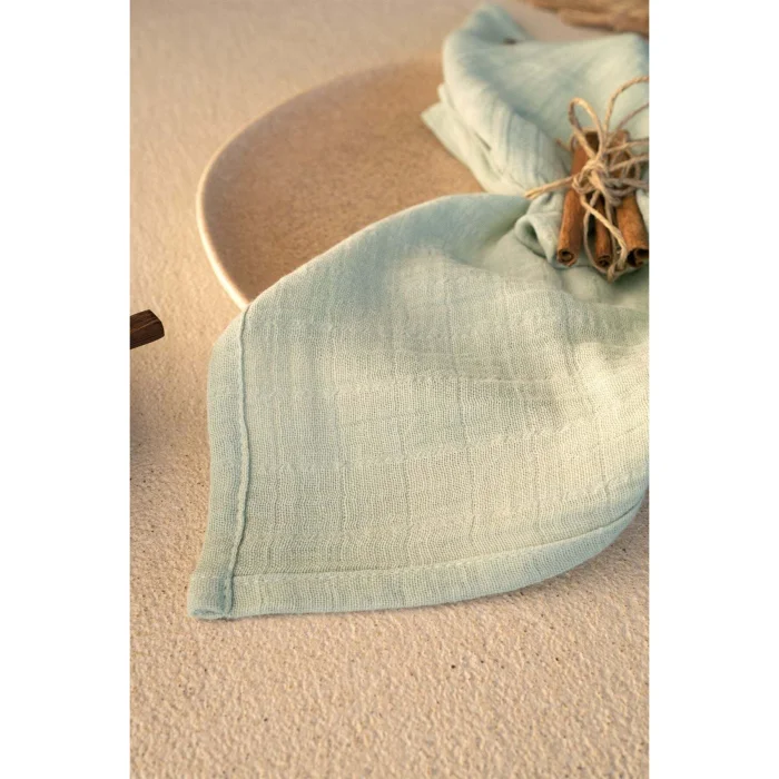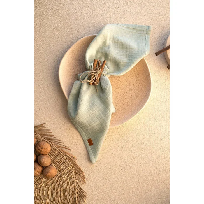 Muslin Napkin adds an elegant touch to your tables with its elegant texture and simple elegance.; Made of 100% cotton, this napkin offers extra softness with its pre-washed structure and provides a comfortable experience with every use.; This piece, which elevates the atmosphere of the table, offers both a stylish and functional option, leaving your guests with unforgettable elegance. Thanks to its Oeko-Tex certification, it can be used safely, and its natural texture reflects quality in every detail. Material: 100% Cotton