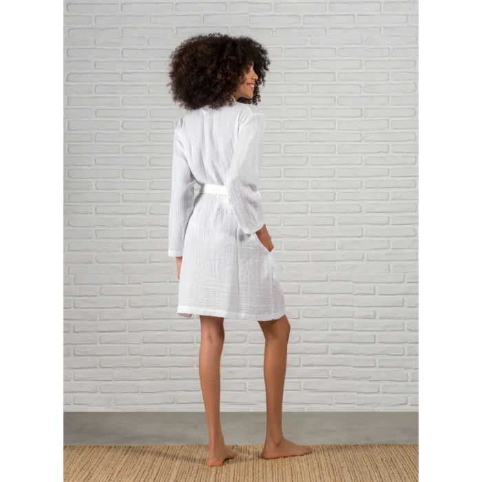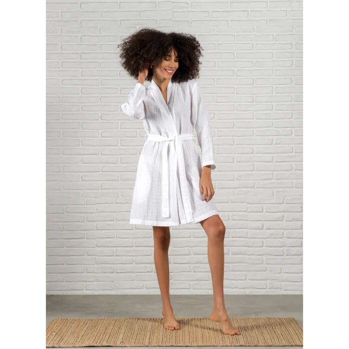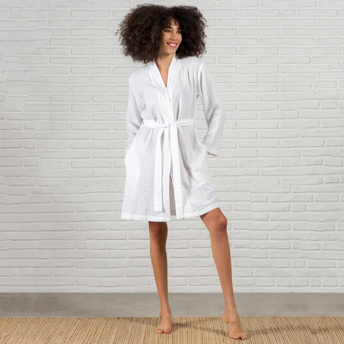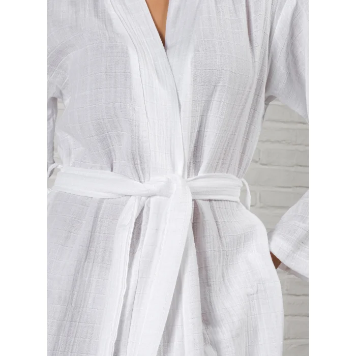 Muslin Bathrobe is the symbol of comfort and peace after bathing with its soft texture and elegant design. 100% cotton muslin fabric gently hugs your skin, while its light and breathable structure increases the comfort of every moment. With its unique comfort, it completes the peace in your home as a piece that will surround you at any time of the day. This bathrobe, which is both practical and stylish, accompanies your most special moments with its naturalness and elegance.