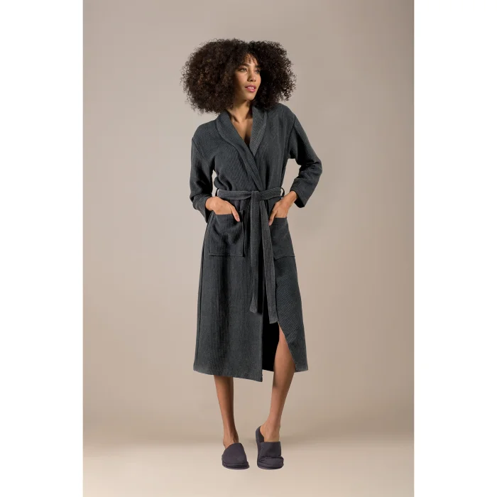 The Stone Robe is an elegant design that will become a staple in bathrooms. The porous structure of the special Stone weaving developed by Barine ensures rapid absorption of water and easy passage of air, thus offering quick drying properties. Made of 100% cotton, this bathrobe takes comfort to the highest level in your bathroom with its soft texture. Offering both elegance and functionality together, this design makes any bathroom experience more enjoyable.