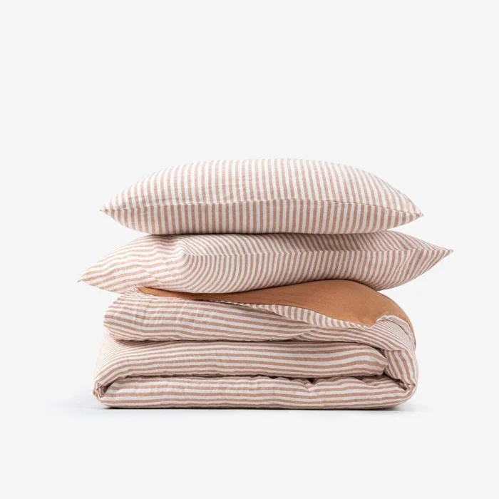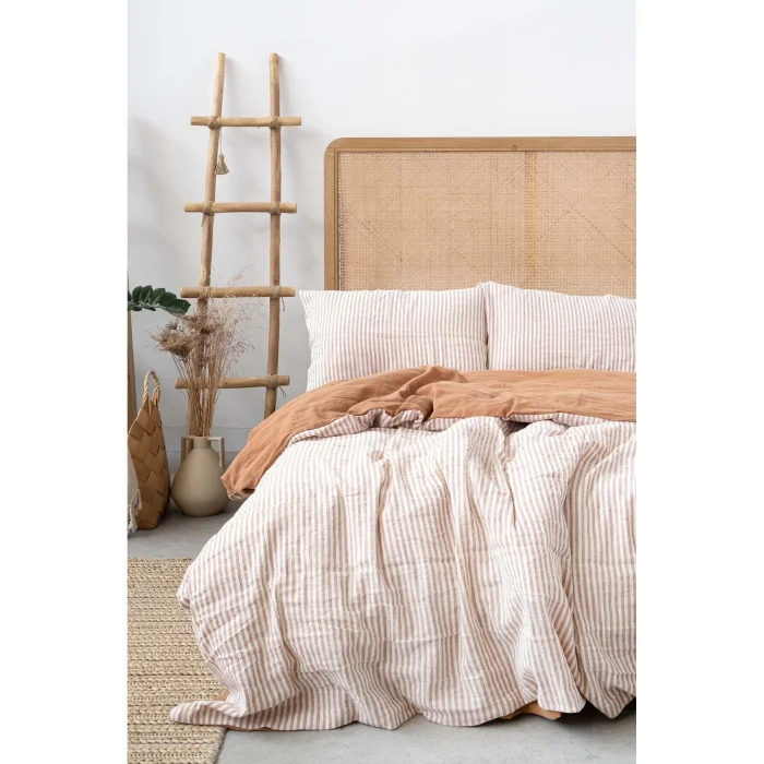 Product: Striped Serenity Linen Blend Duvet Cover Caramel 200x220 Cm