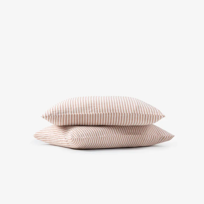 Striped Serenity Pillowcase combines the cool touch of linen and the softness of long-staple cotton with its special fabric structure. These pillowcases are pre-washed for extra softness, ensuring you experience superior comfort with every use. The natural crisp feel and breathable nature of linen create a soothing effect during sleep, while the softness of cotton adds an additional layer of comfort.