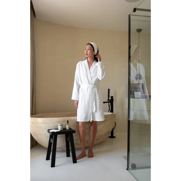 Waffle Bathrobe offers a stylish and functional alternative to classic terry bathrobes. Its 100% cotton texture and soft and porous structure provide extremely comfortable use. With its high water absorbency, it offers an excellent drying experience after bathing. This Oeko-Tex certified bathrobe prioritizes your comfort as a skin and environmentally friendly option.