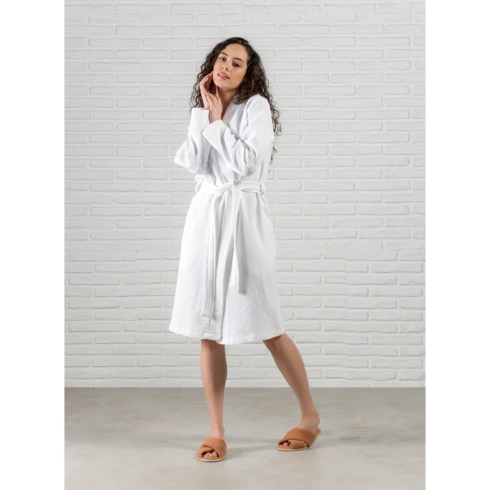 Waffle Bathrobe offers a stylish and functional alternative to classic terry bathrobes. Its 100% cotton texture and soft and porous structure provide extremely comfortable use. With its high water absorbency, it offers an excellent drying experience after bathing. This Oeko-Tex certified bathrobe prioritizes your comfort as a skin and environmentally friendly option.