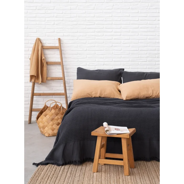 Waffle Bedspread offers extra soft use with its 100% cotton texture and final washing process. This cover, which can be used comfortably in all seasons, provides an elegant aesthetic and high comfort with its waffle texture. The Oeko-Tex Standard 100 certification guarantees that there are no more than 350 harmful chemicals, thus providing a safe option. This bedspread completes your bedroom with both elegance and functionality.