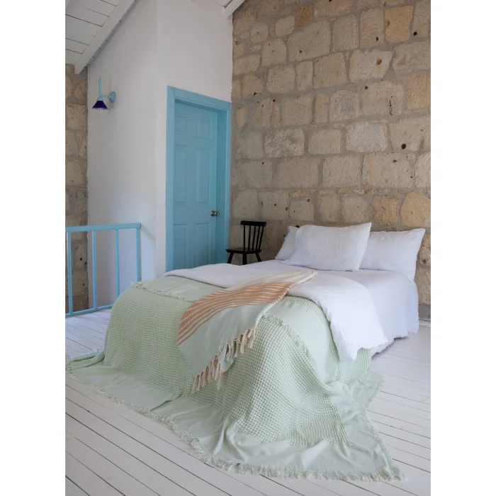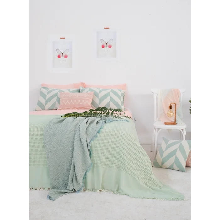 The Waffle Bedspread offers an extra soft use with its 100% cotton texture and final washing process. This cover, which can be used easily in all seasons, provides an elegant aesthetic and high comfort with its waffle texture. The Oeko-Tex Standard 100 certification guarantees the absence of more than 350 harmful chemicals, thus providing a safe option. This bedspread complements your bedroom with its elegance and functionality.