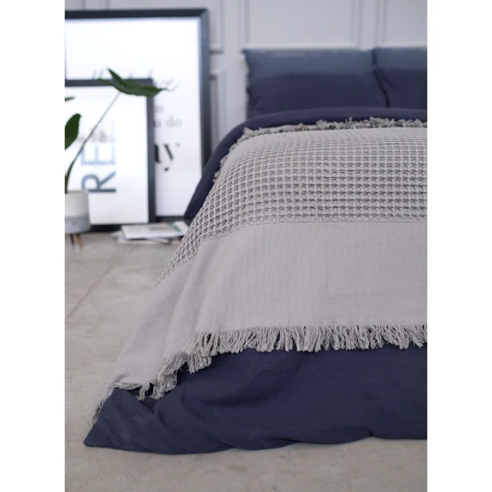 Waffle Bedspread offers extra soft use with its 100% cotton texture and final washing process. This cover, which can be used comfortably in all seasons, provides an elegant aesthetic and high comfort with its waffle texture. The Oeko-Tex Standard 100 certification guarantees that there are no more than 350 harmful chemicals, thus providing a safe option. This bedspread completes your bedroom with both elegance and functionality.