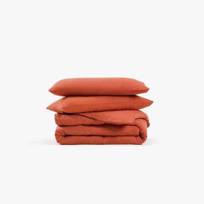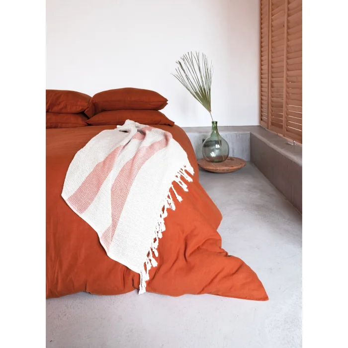 Washed Linen Duvet Cover offers the perfect blend of 65% linen and 35% cotton. The texture of washed linen creates a cool and crispy feel, while the long-staple cotton provides infinite softness. This duvet cover is elegant and lightweight, making it easy to use from hot summer days to cool nights. Each product, after being specially washed, acquires a unique appearance and is presented to you by pre-pulling. It can also be used on your travels or domestic arrangements with its stylish pouch.