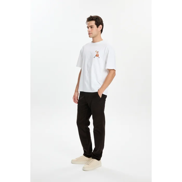 100% Good cotton short-sleeved loose-fitting round neck t-shirt with ribbed neckline. There is an embroidery design on the chest. The model is 1.87 meters tall and wears a size M. You can choose your own size. BSGMTMTS01