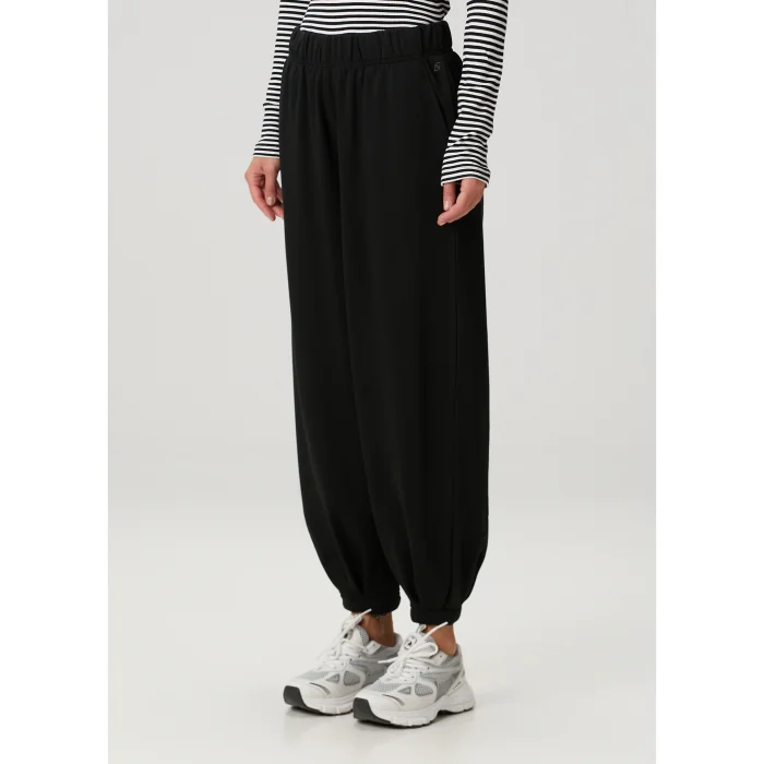 82% Good cotton, 18% Recycled polyester washed loose-fitting sweatpants with elasticated waist. It has a high waist and a hidden adjustable elastic at the wrist. The model is 1.74 meters tall and wears a size S. You can choose your own size.