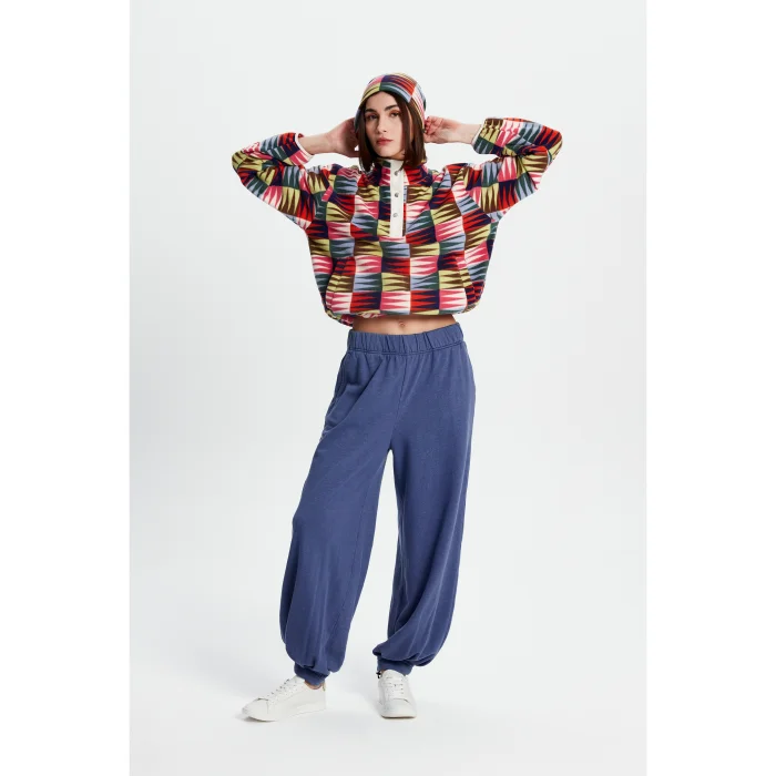 82% Good cotton, 18% Recycled polyester washed loose-fitting sweatpants with elasticated waist. It has a high waist and a hidden adjustable elastic at the wrist. The model is 1.74 meters tall and wears a size S. You can choose your own size.
