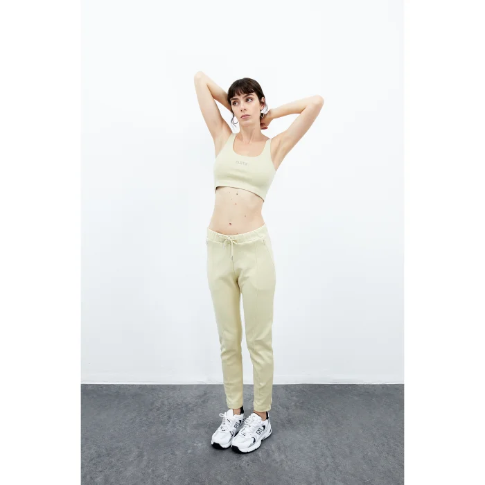 75% Cotton 25% Recycled Polyester. Classic cotton sweatpants of medium height. The waistband is laced at the front and has pockets on the side. The model wears Small with a height of 1.79 meters. You can choose your own size. BSGWFBESP01