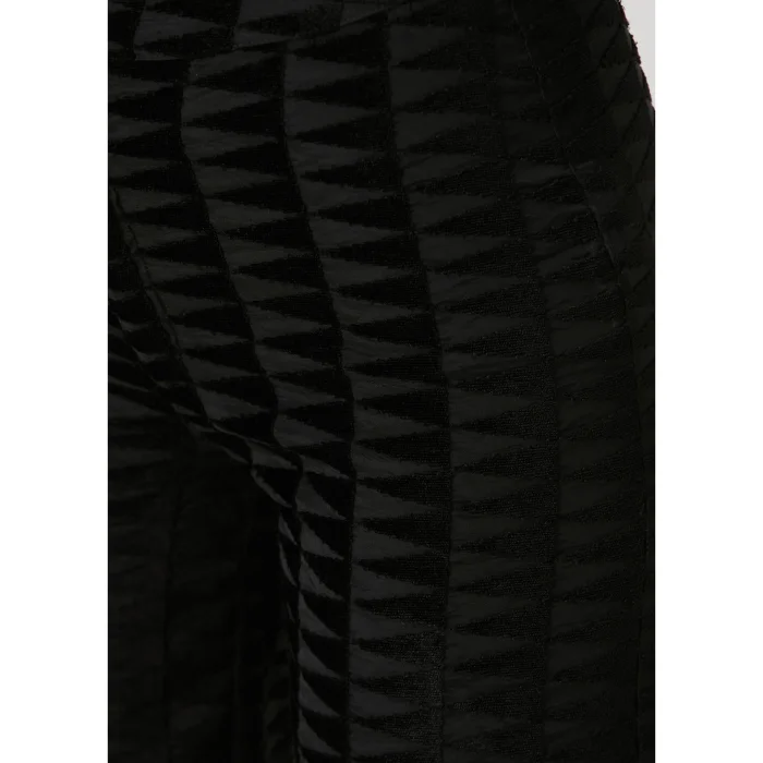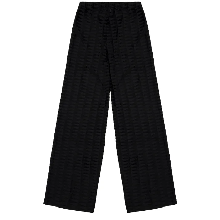 94% Viscose, 6% Elastane embossed straight cut elastic back tulle trousers. Comes with tonal mini leggings. The model is 1.74 meters tall and wears a size S. You can choose your own size. BSGWTMPNT08