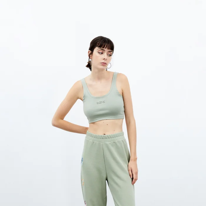 97% Good Cotton 3% Lycra sleeveless crop top. The model wears a size Small with a height of 1.79 meters. You can choose your own size. BSGWFBTTT01