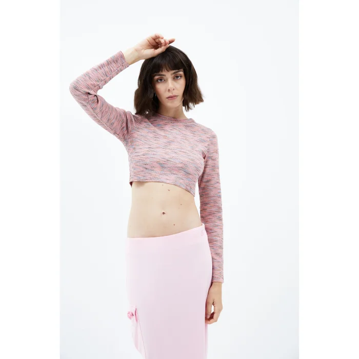 70% Cotton 25% Recycled Polyester 5% Elestan Long sleeve crop top. The model is 1.79 meters tall and wears a small size, you can choose your own size. BSGWFBKCT04
