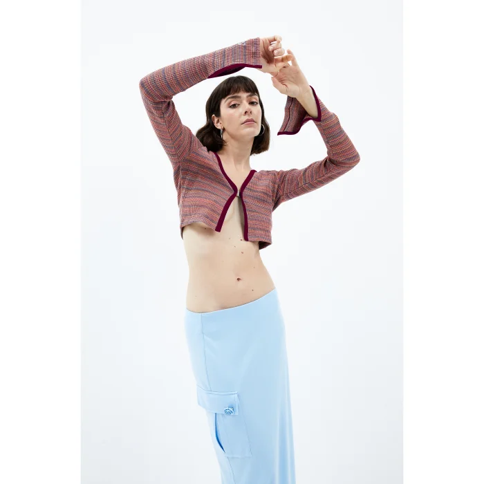 70% Cotton 25% Recycled Polyester 5% Elestan Long sleeve crop top. The model is 1.79 meters tall and wears a small size, you can choose your own size. BSGWFBKOCT02