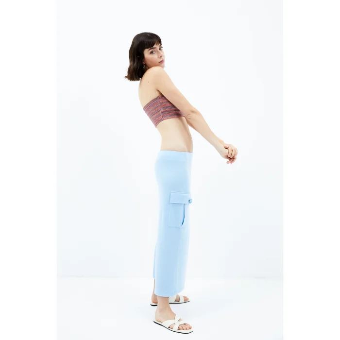 67% Tencel 33% Cotton Long low waist skirt with slits on the left side, pockets on the right side and detachable floral details. The model is 1.79 meters tall and wears a size Small. You can choose your own size. BSGWFBSK02