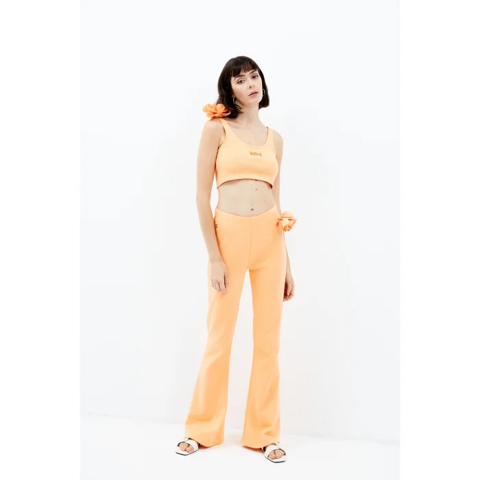 71% Good Cotton 29% Recycled Polyester Spanish leg stretchy sweatpants, removable floral detail. The model is 1.79 meters tall and wears a size Small. You can choose your own size. BSGWFBFSP02
