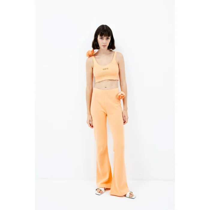 71% Good Cotton 29% Recycled Polyester Sleeveless crop top t-shirt with removable floral detail. The model is 1.79 meters tall and wears a size Small. You can choose your own size. BSGWFBFTT02