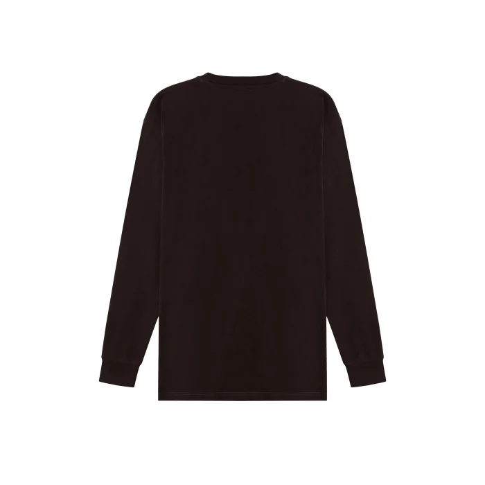 100% Good cotton loose-fitting long sleeve round neck t-shirt with neck and ankle ribbing. It has a triangular pocket with a flock logo printed on the chest. The model is 1.87 meters tall and wears a size M. You can choose your own size. BSGMTMLTS01-3