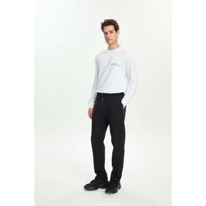 4% Elastane, 96% Good Cotton straight-cut knit sweatpants with side pockets and cord at the waist. The model is 1.87 meters tall and wears a size M. You can choose your own size. BSGMTMSP02