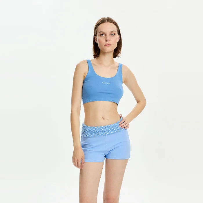 97% Good Cotton, 3% Lycra belly blouse with open straps Bassigue logo embroidery on the chest. The model is 1.77 meters tall and wears a size S. You can choose your own size. BSGWORETT02