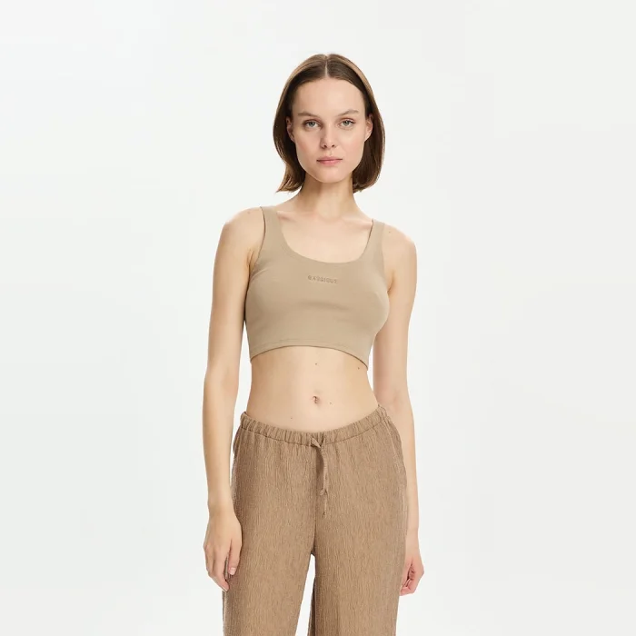 97% Good Cotton, 3% Lycra belly blouse with open straps Bassigue logo embroidery on the chest. The model is 1.77 meters tall and wears a size S. You can choose your own size. BSGWORETT01
