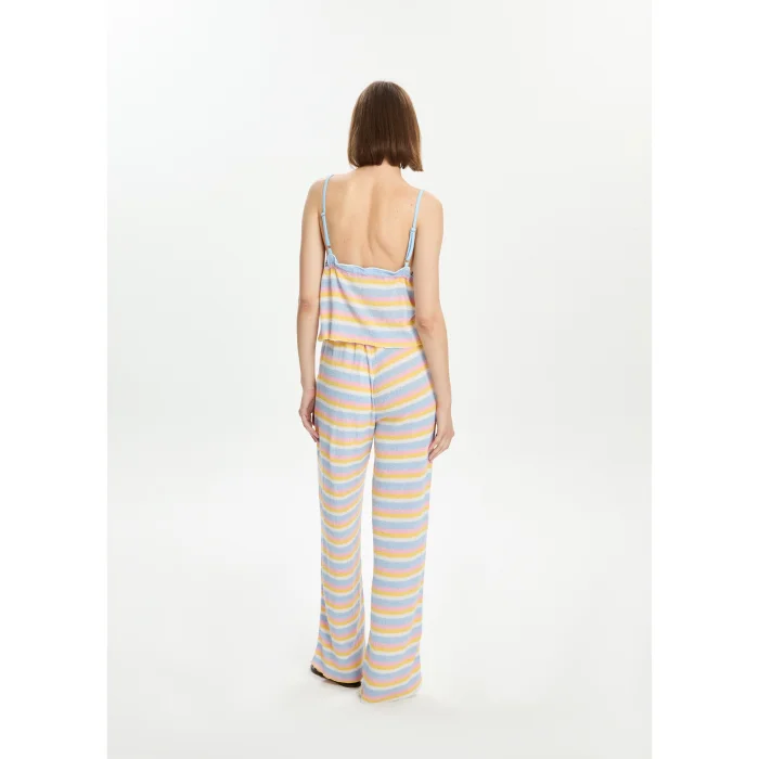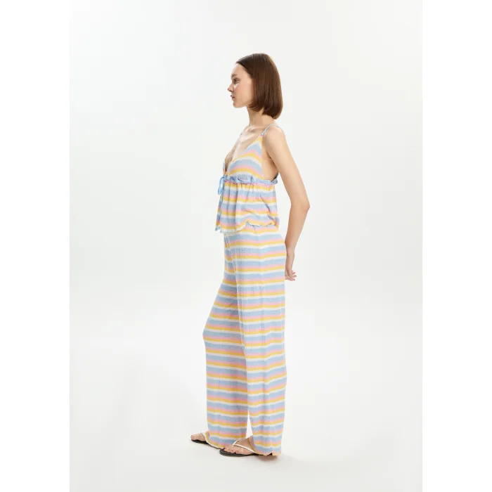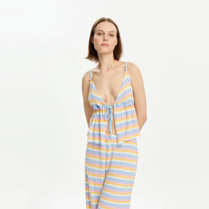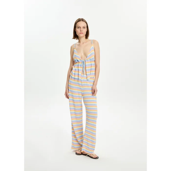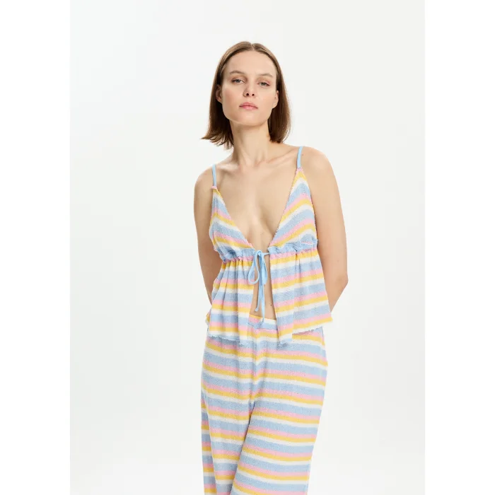 45% Tencel, 45% Viscose, 10% Recycled Polyamide blouse with adjustable straps and front tie-up. The model is 1.77 meters tall and wears a size S. You can choose your own size. BSGWORTP10-3
