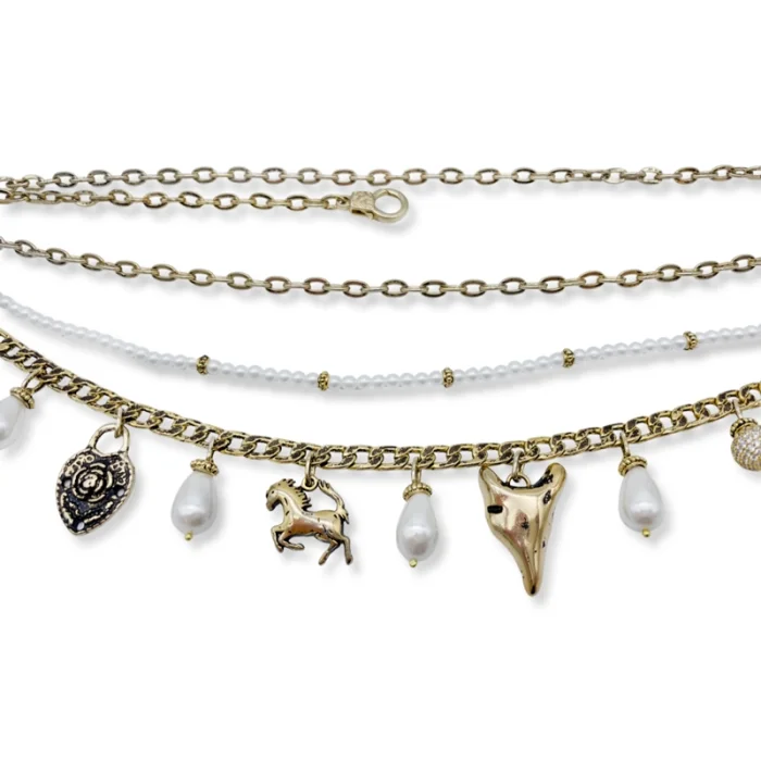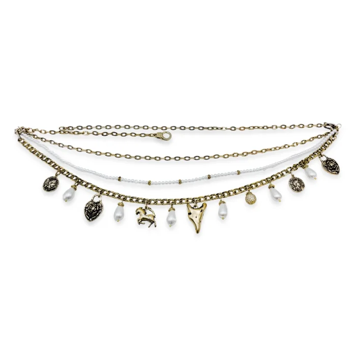 Production Type: Handmade Material: 22 carat gold plated chain on steel, 4 mm majorca pearl, 10 mm drop majorca pearl, brass Length: 85 cm + 5 cm extension chain