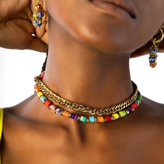 Production Type: Handmade Necklace Material: 22K gold-plated brass chain, howlite stone Length: 35 cm + 5 cm extension chain Weight : 65 gr