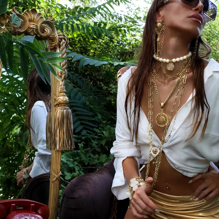 Production Type: Handmade Material: 22 carat gold-plated brass, crystal stone Length: 82 cm + 5 cm extension chain Weight : 112 gr