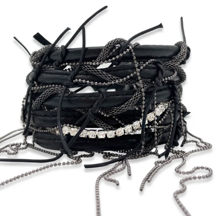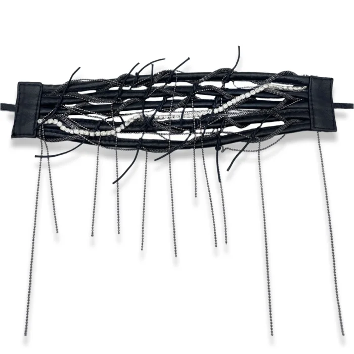 Production Type: Handmade Material: Genuine leather, brass chain, crystal stone Length: 28 cm Width: 7 cm