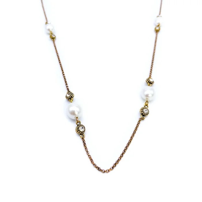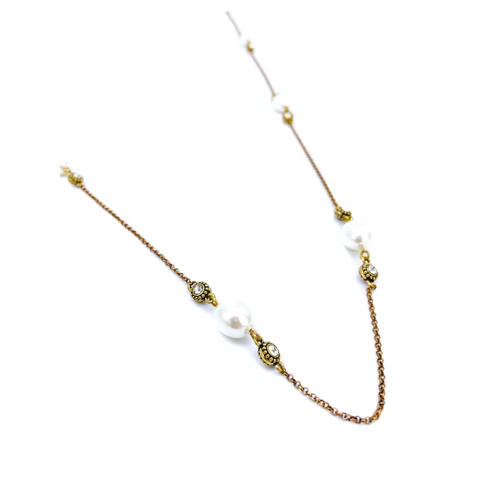 Production Type: Handmade Material : Bronze, natural pearl Length : 80 cm