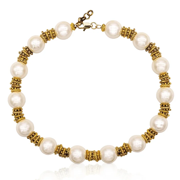 Production Type: Handmade Material: 15 mm majorca pearl, 22k gold-plated brass Length: 43 cm + 5 cm extension