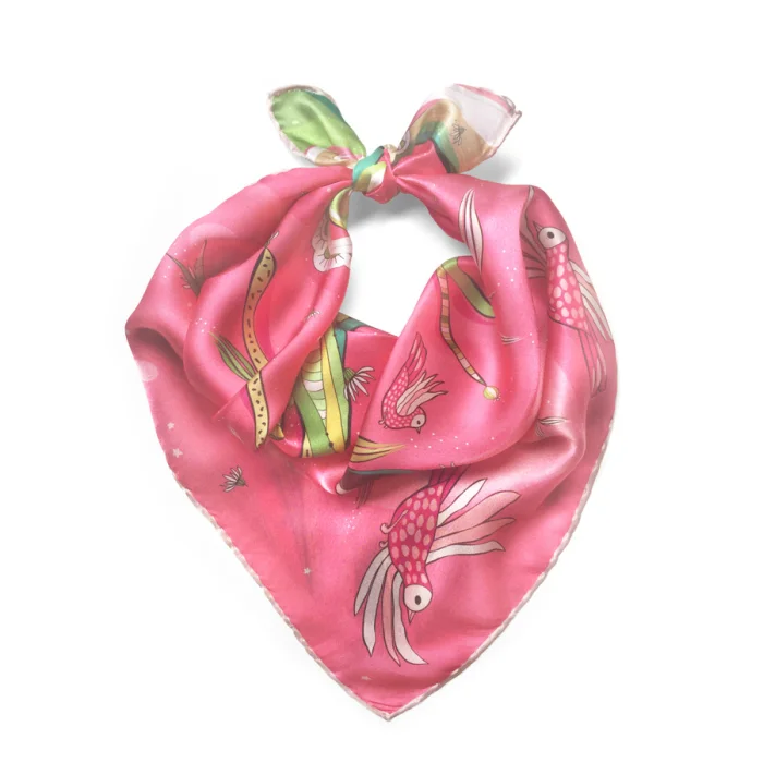 55x55 cm, %100 Satin Silk Fabric, scarf edges are curved by hand.