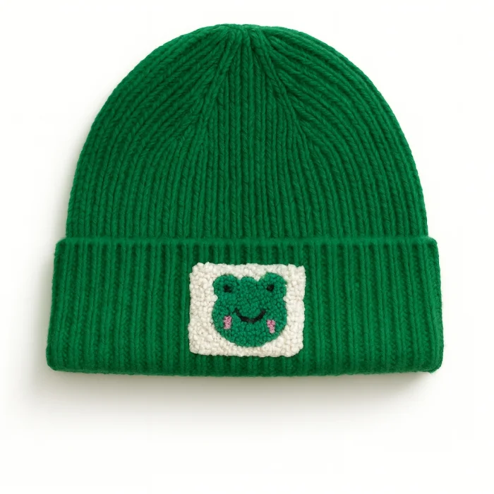 Product: Beige Kids Ve Youth Beanie Frog Punch-embroidery Patterned Luxury Wool Hat Holiday/christmas Gift