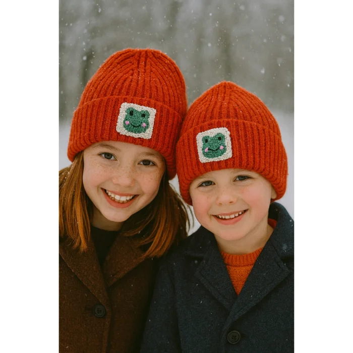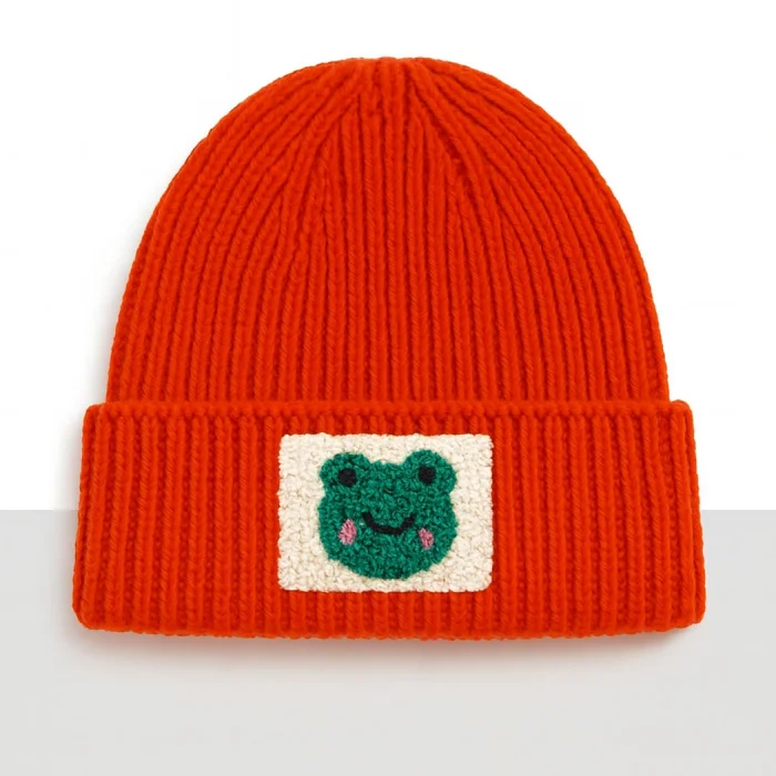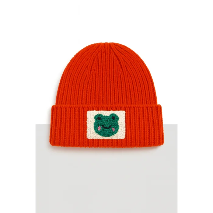 Product: Beige Kids Ve Youth Beanie Frog Punch-embroidery Patterned Luxury Wool Hat Holiday/christmas Gift