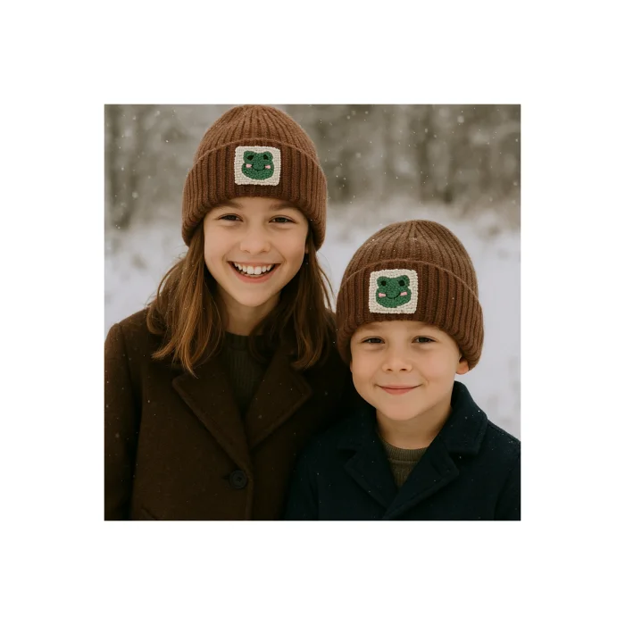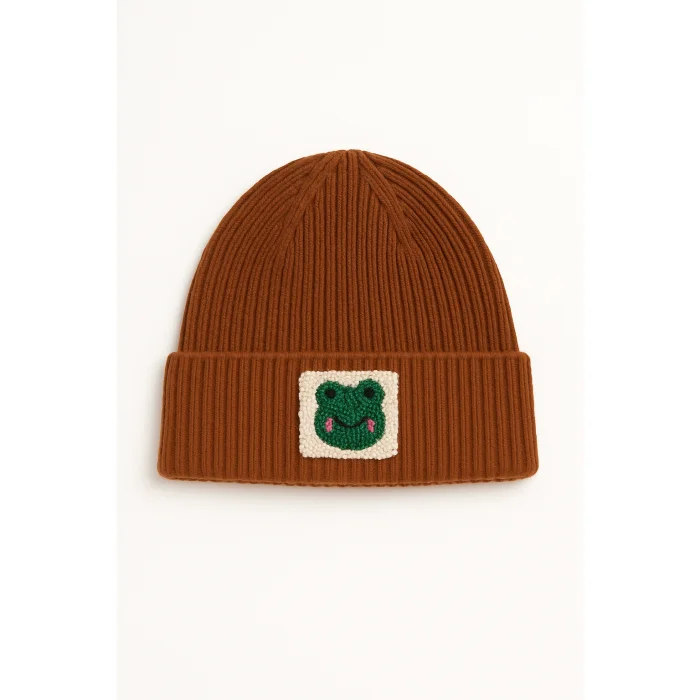 Product: Beige Kids Ve Youth Beanie Frog Punch-embroidery Patterned Luxury Wool Hat Holiday/christmas Gift