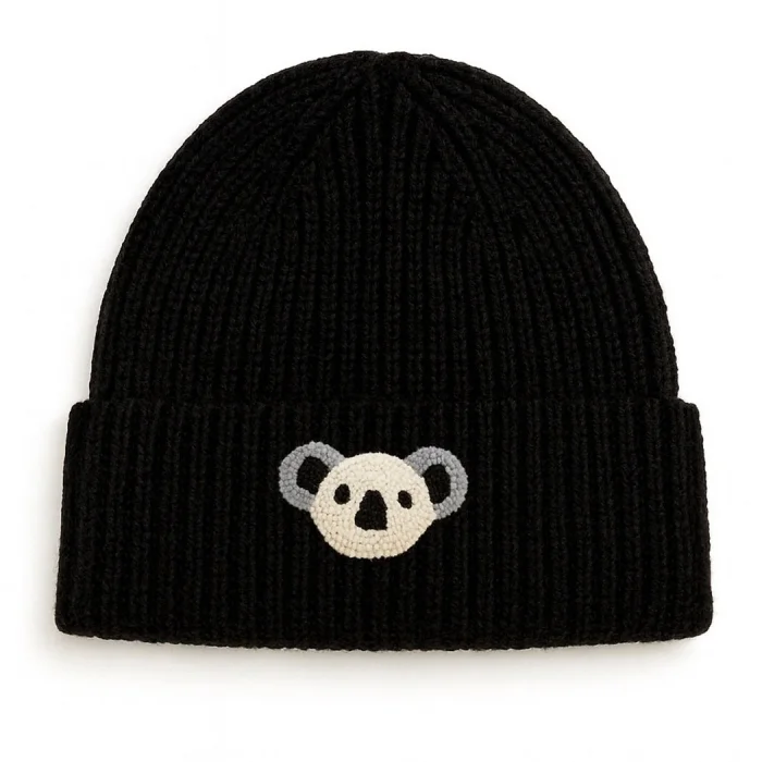 Product: Black Beanie Koala Punch-embroidery Patterned Luxury Wool Hat