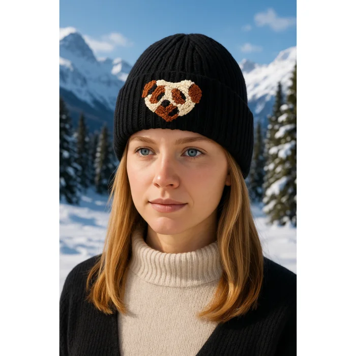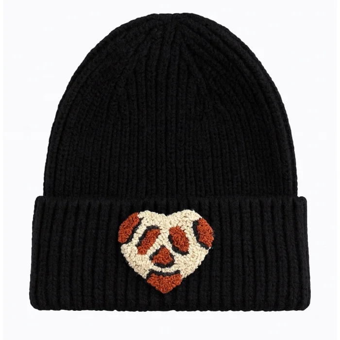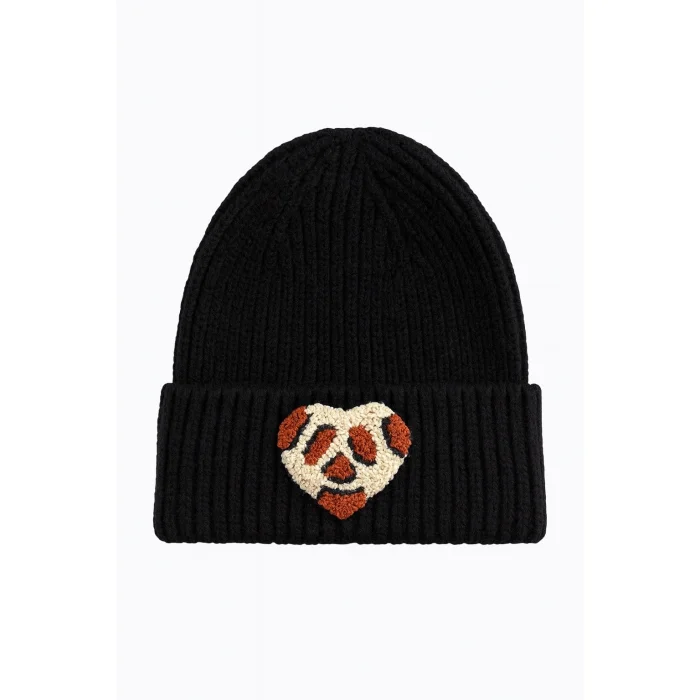 Product: Black Beanie Leopard Heart Punch-embroidery Detailed Gift Holiday/christmas