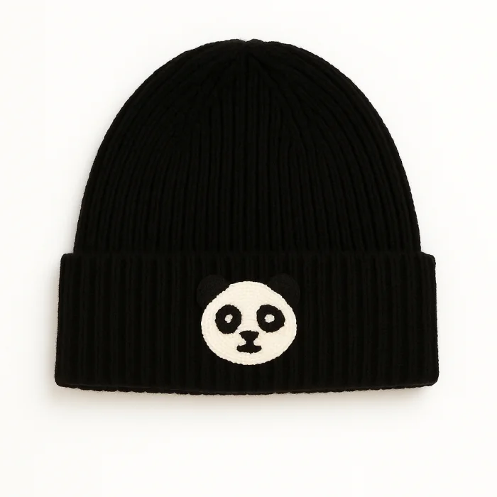 Product: Black Beanie Panda Punch-embroidery Patterned Luxury Wool Hat Holiday/christmas Gift Panda Beanie
