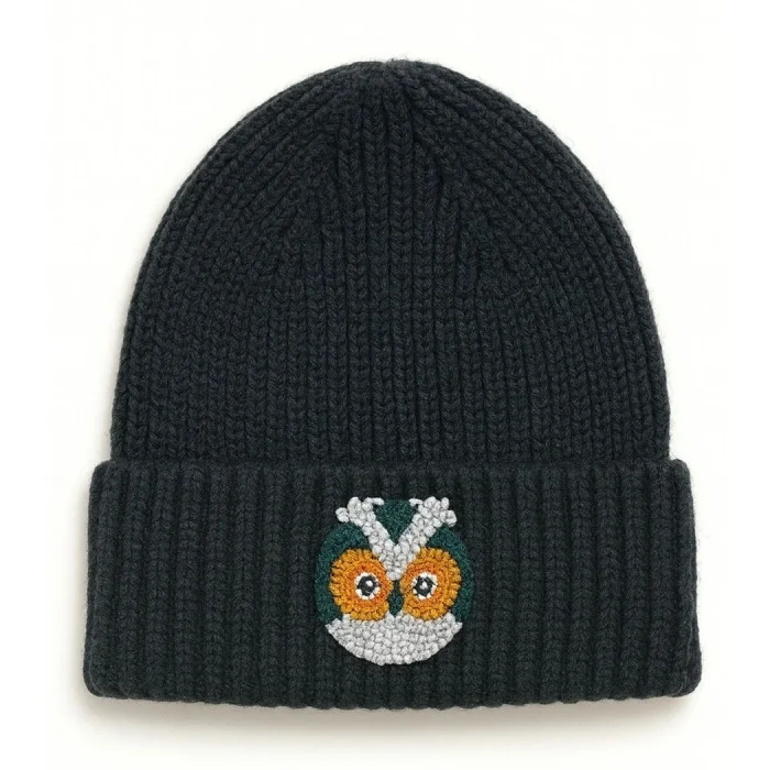 Product: Black Owl Beanie Punch-embroidery Hat Holiday/christmas Gift